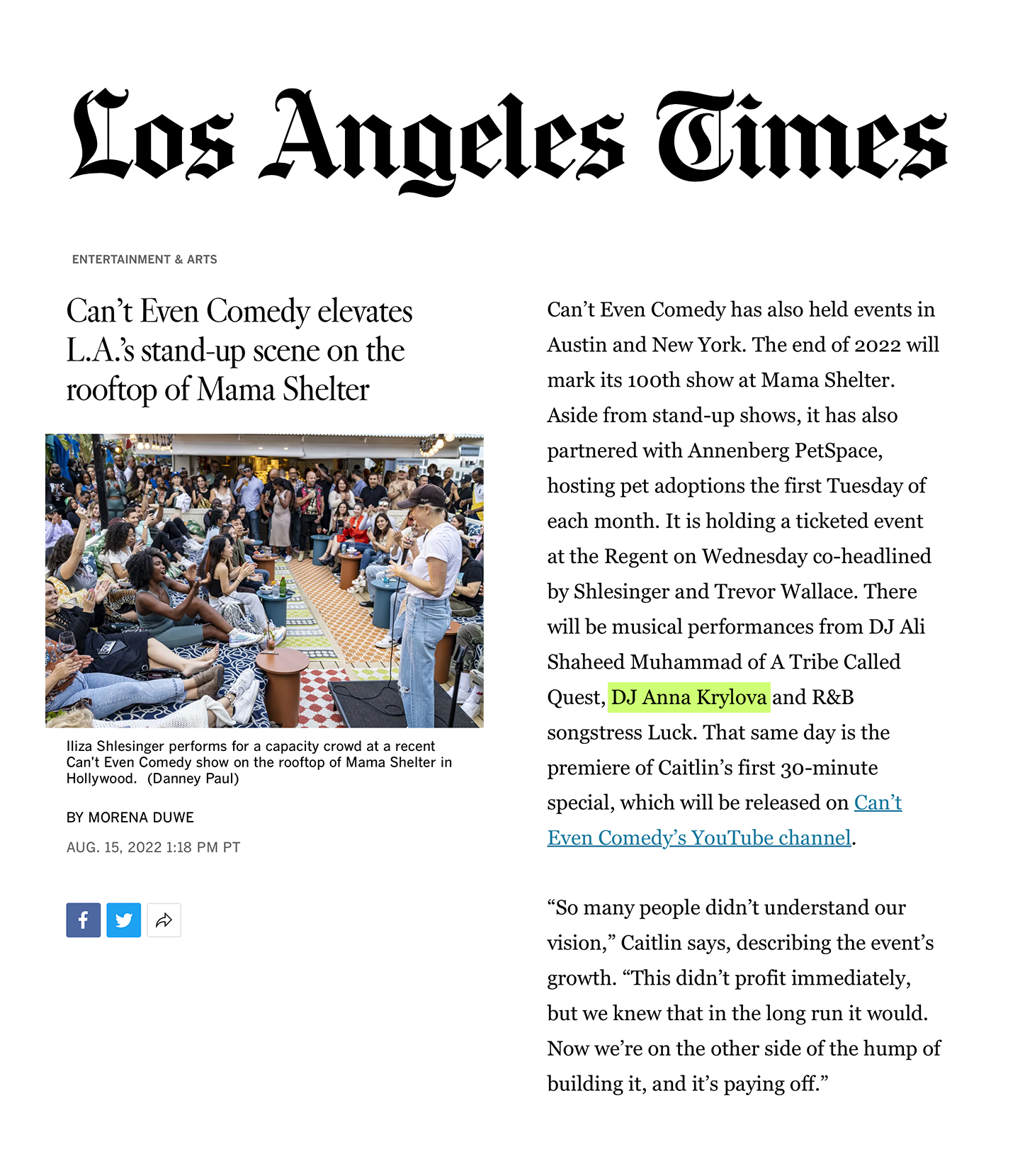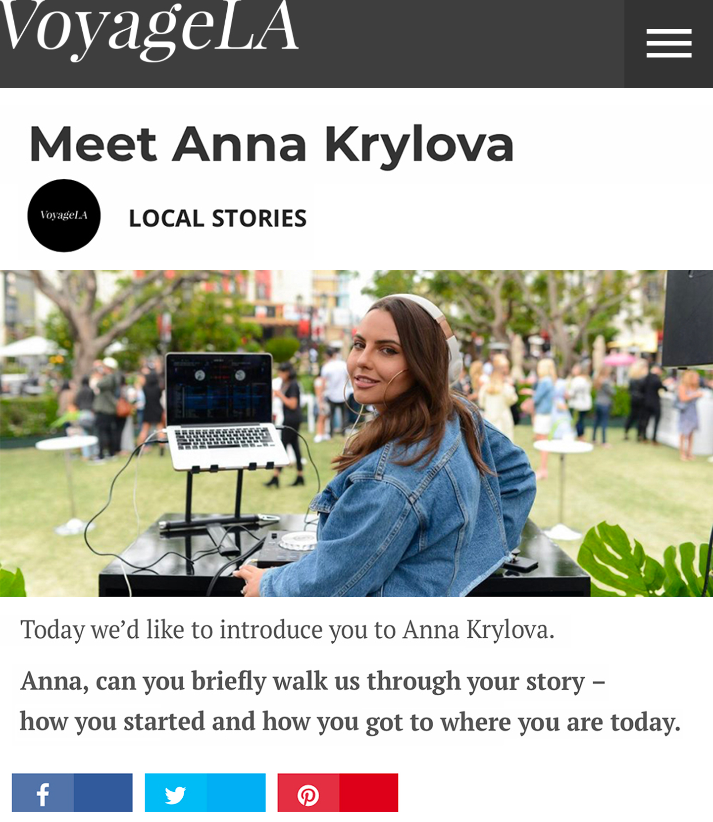 Her love of music coupled with an ever immersive entertainment business has brought her alternative talents to the table, the turn tables. From corporate events to branded activations, she has DJ’d for notable clients such as Amazon, Meta, Foot Locker, Ulta, Barbie, Nike, Urban Outfitters, Boohoo and many more. No venue is too large or too small for Anna: whether it’s residency at Mama Shelter rooftop in Hollywood, opening up for A-list comedians at The Regent Theatre, playing a non profit acro festival in Santa Monica beach or warming up Chargers fans at the So-Fi stadium.